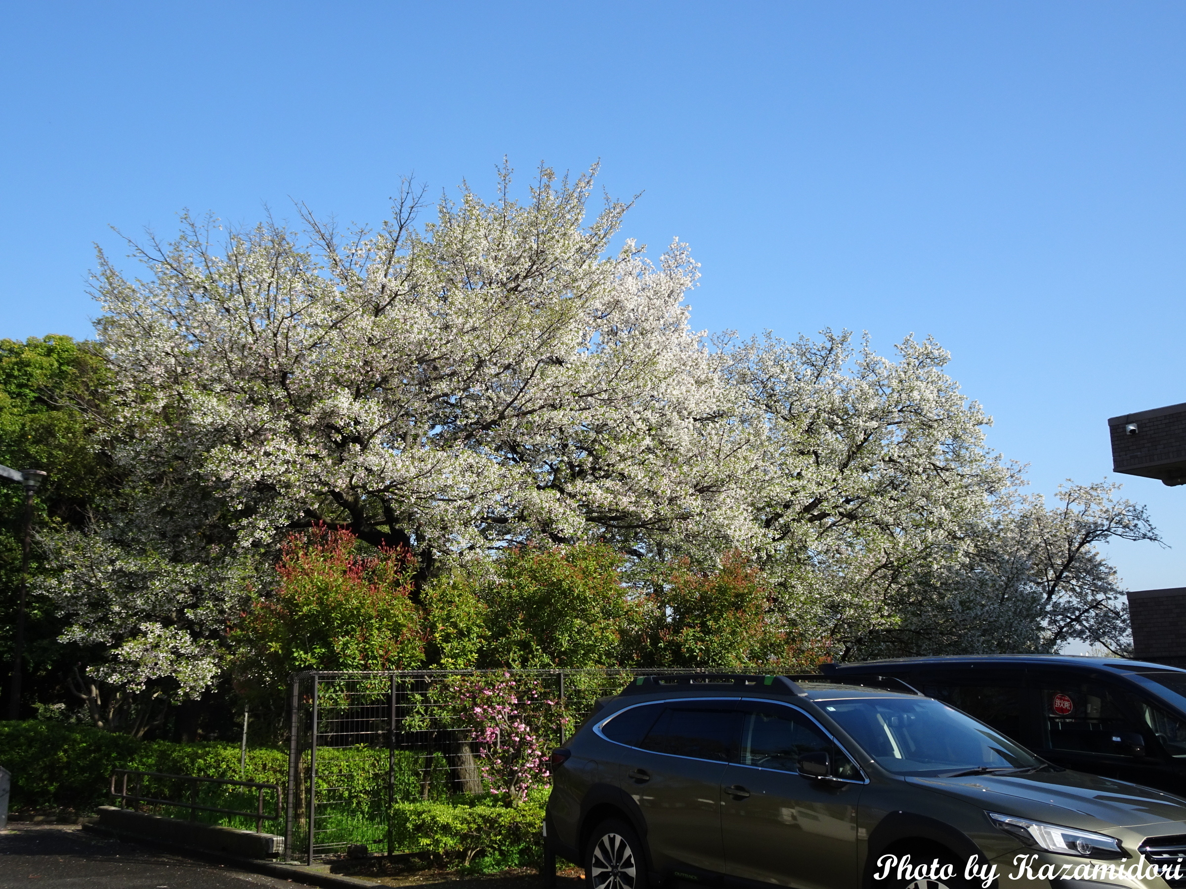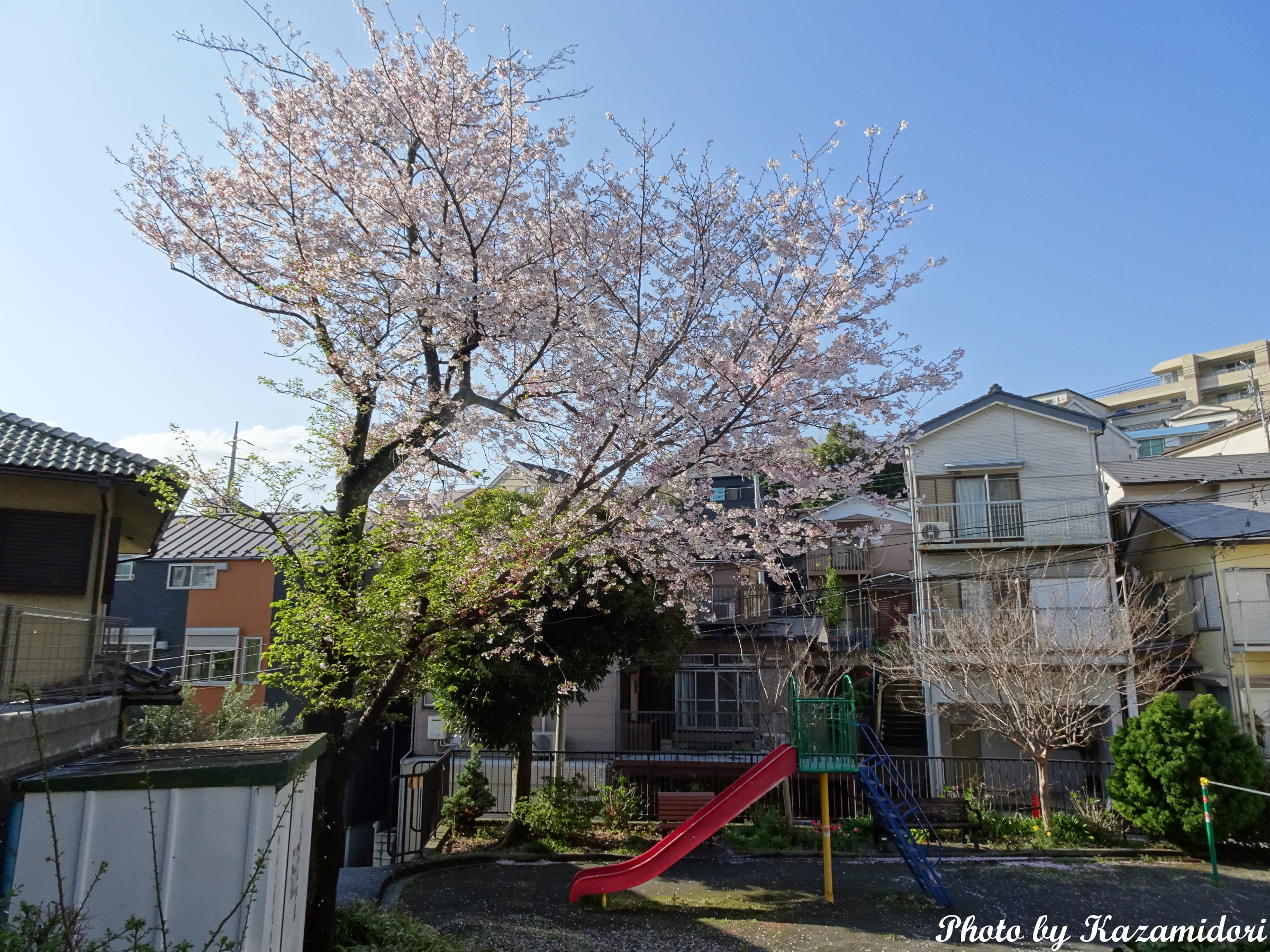 帰ってきたら天気は良好で、その分暑い。重い荷物を持って歩くのは大変。上衣をにがないと汗だくになりそうだ。季節はそろそろ桜。駅近くの公園ではサトザクラが綺麗に咲いている。