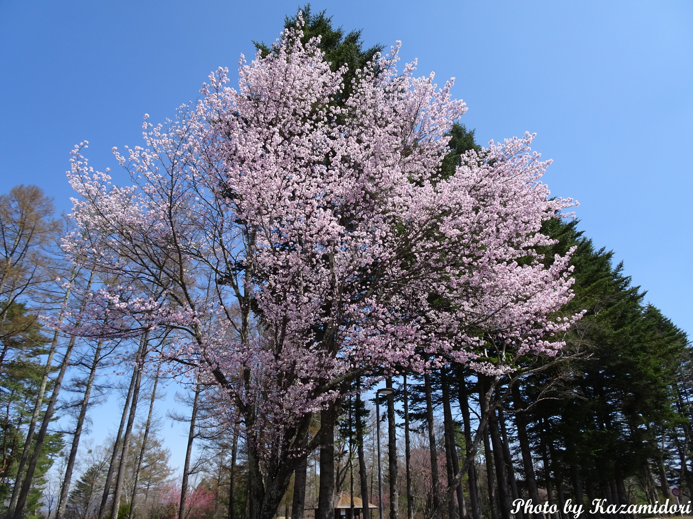 そんな感じで本宅へ。近所の小さなお社脇の桜はまだ見頃だ。天気が下り坂になって、雲が多くなってきたのが残念。脇の八重桜もいい感じで咲いている。