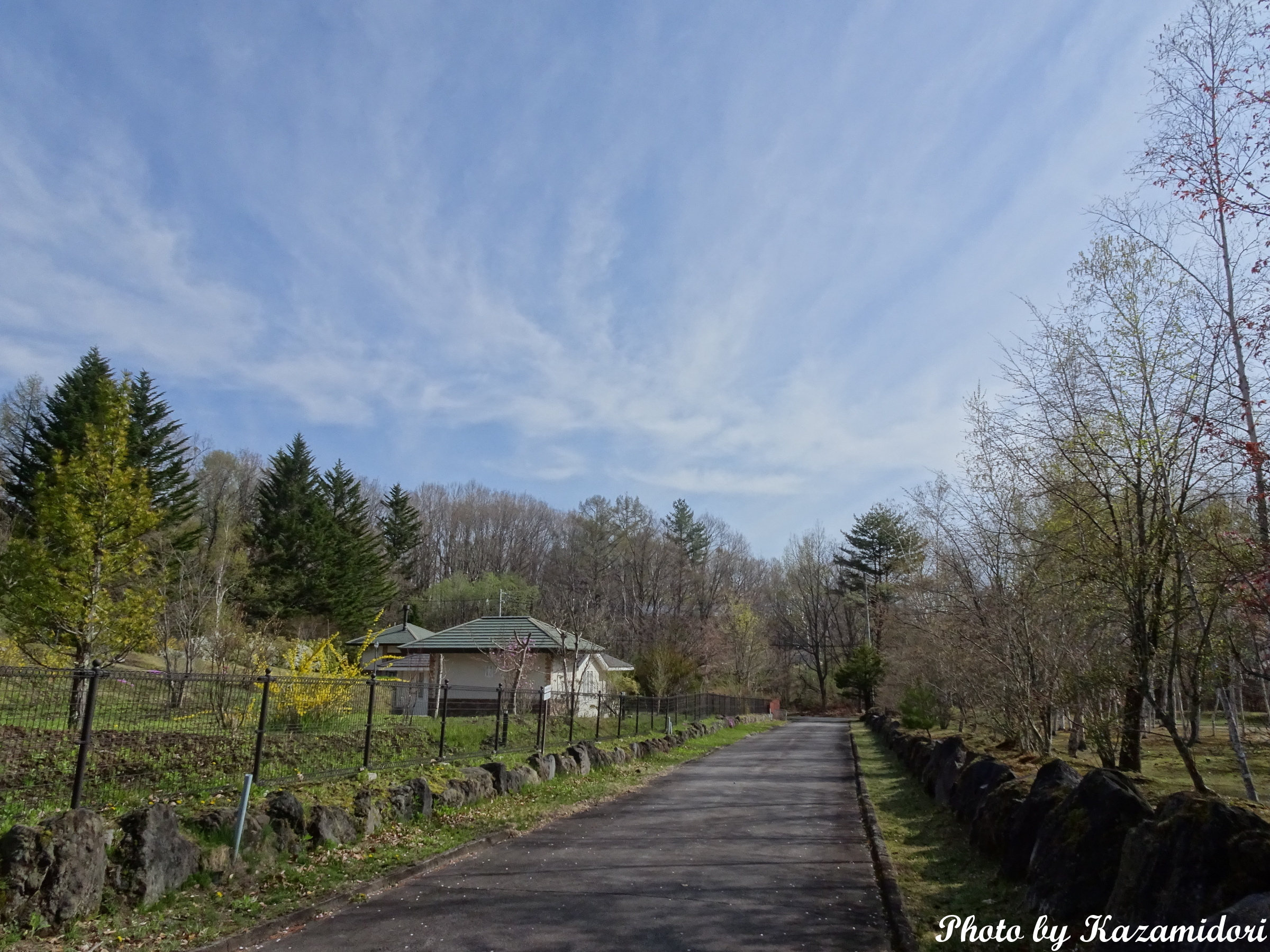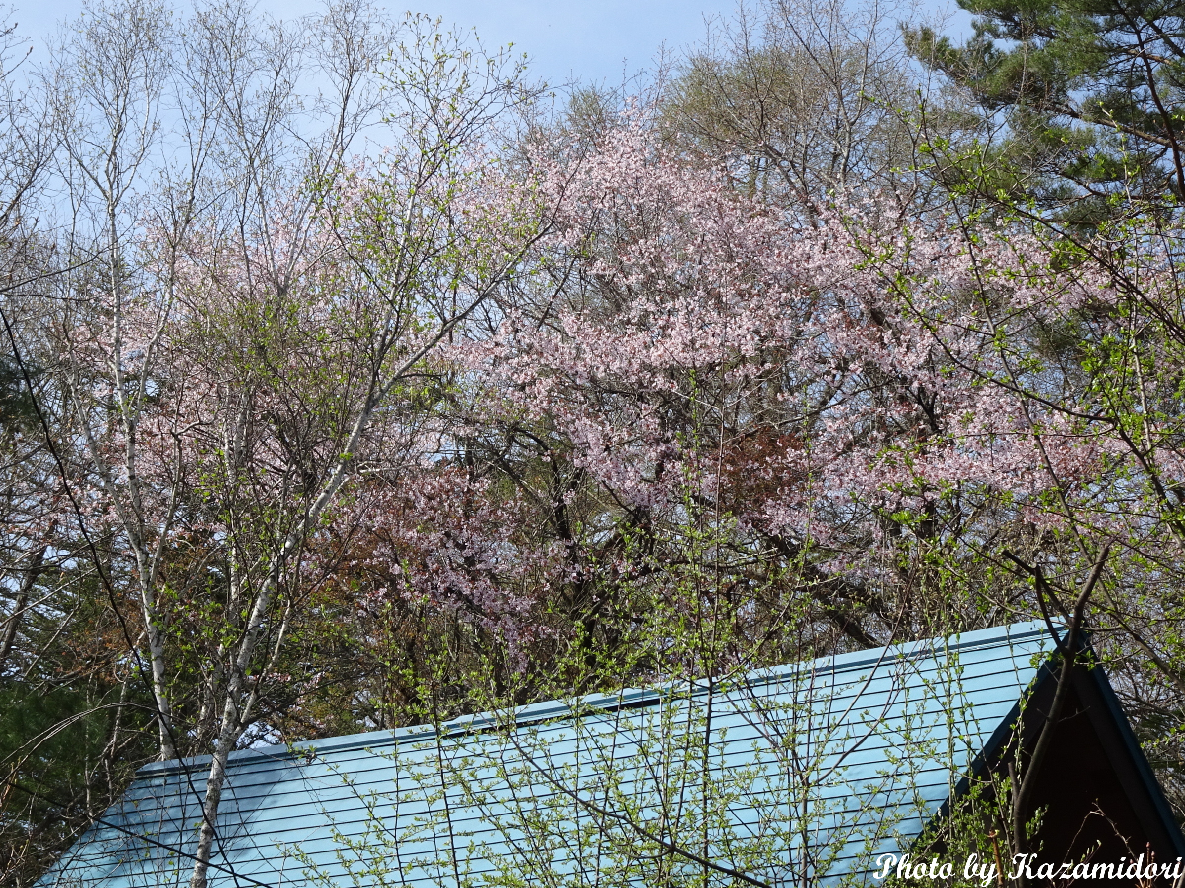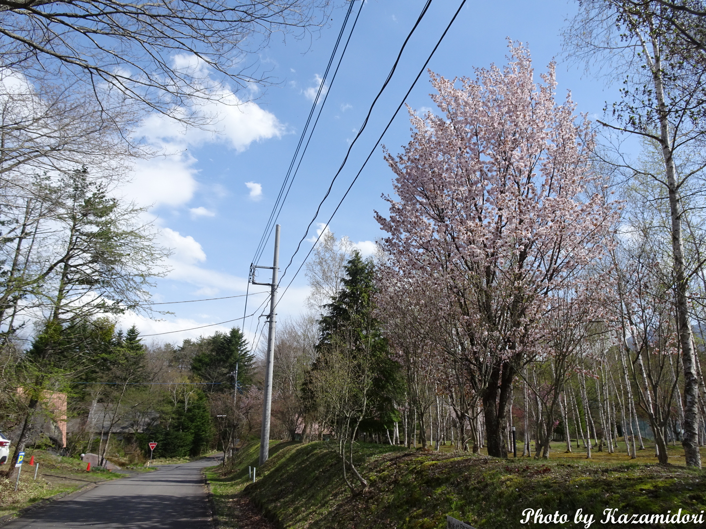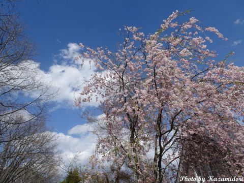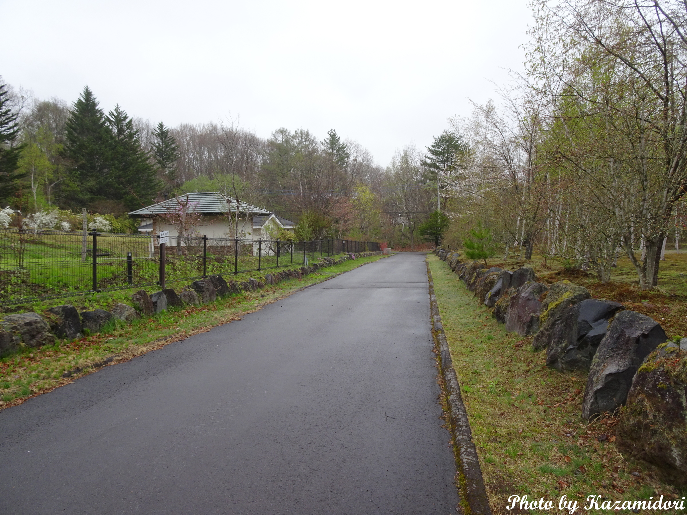 散歩は、すっかり緑になった桜の木を横目に、こんなツツジとか、まだ咲いている八重桜とかを見ながら歩く。