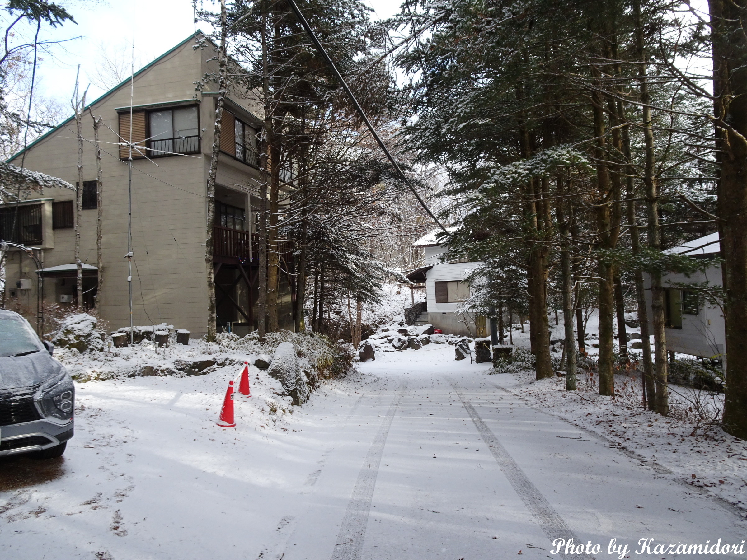 別宅へ戻って数日、そこそこいい天気が続いて、その分夜は底冷え。マイナス6℃まで下がった日もあり、そろそろ冬も本番。で、とうとうこんな感じで積雪。