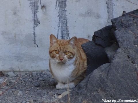 途中、こいつに出会う。茶白の若い猫だが、昨年の今頃は生まれたばかりだった奴だ。まだ警戒心が強く、すぐに逃げてしまうのは残念。