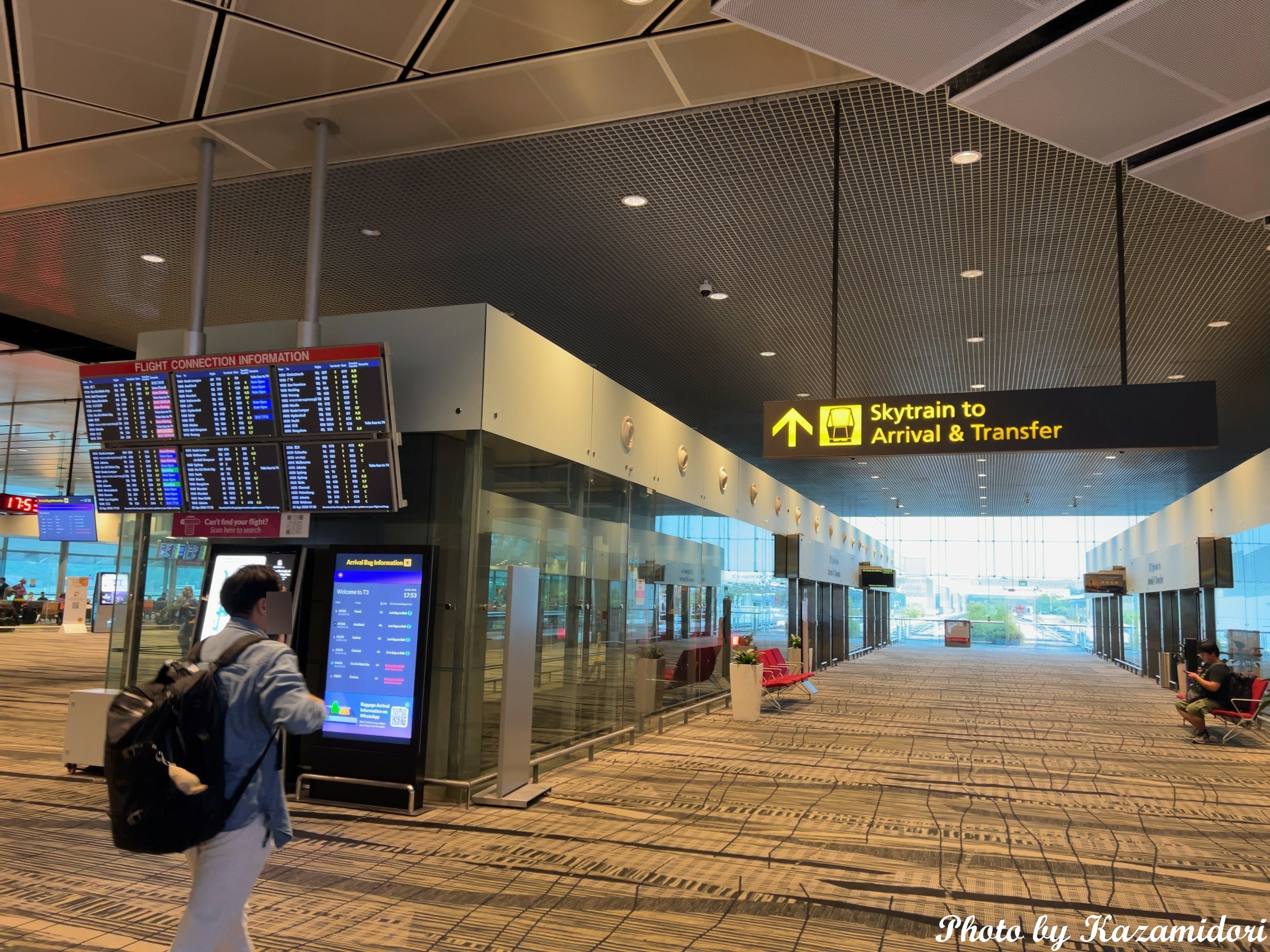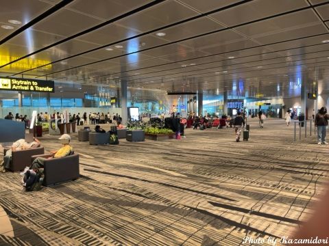 そんなこんなで、どうにか無事に(現地時刻の)午後5時半頃にシンガポールに到着。とりあえず、ここまでは予定通り。シンガポール(チャンギ空港)は、イミグレまで長距離移動が必要になるため、到着後、出発コンコースに抜けるためのセキュリティチェックがある。乗り継ぎと同じ扱いである。それから出発コンコースに出て、トラム乗り場に向かう。