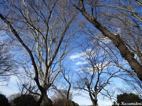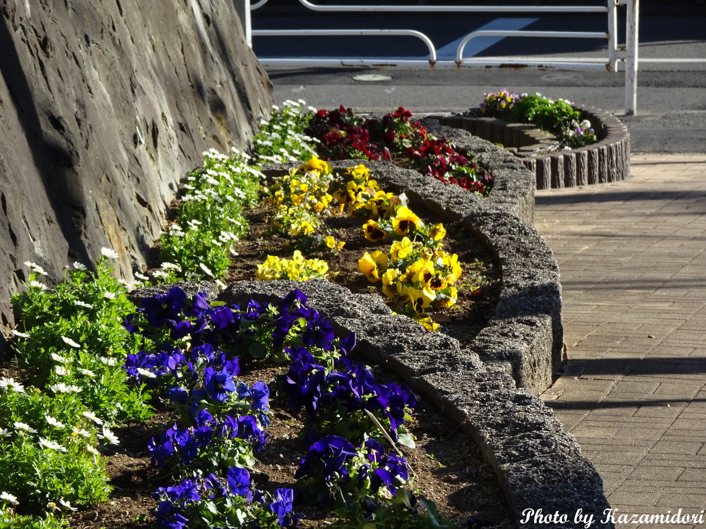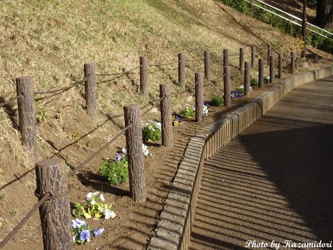 すっかり葉が落ちた神之木公園の木々の間を歩きながら、ふと見ると花壇には既に花が植えられている。こちらは春の準備が進みつつある。