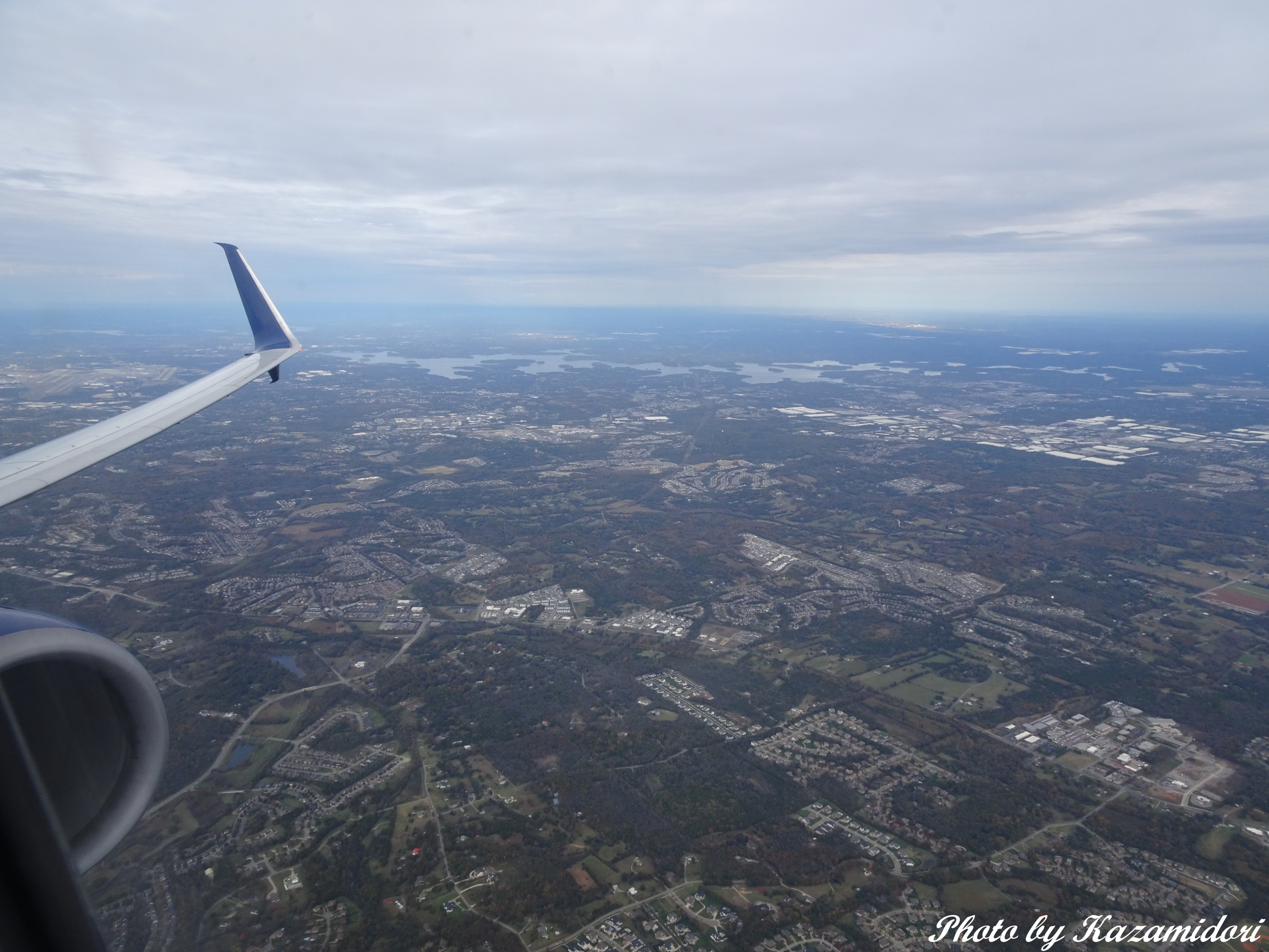 行き先はアトランタ。そこで一泊して、翌朝、羽田便に乗る予定である。フライトは実質40分ほど。雲を抜けたと思ったら、すぐに高度を下げ始め、やがてアトランタの市街が見えてくる。